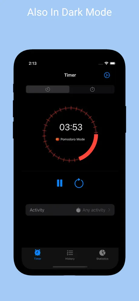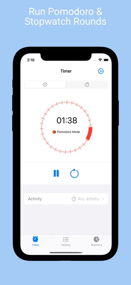 • Pomodoro and stopwatch modes — Use stopwatch for activities that don’t fit fixed Pomodoro blocks.