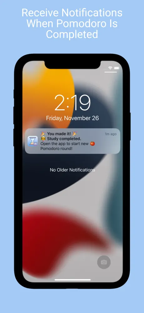 The app uses notifications only to alert you when a Pomodoro interval ends. No data is collected — your activity stays on your device.